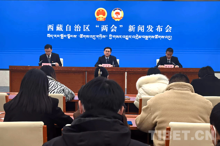 圖為西藏自治區(qū)“兩會(huì)”新聞發(fā)布會(huì)現(xiàn)場(chǎng) 攝影:次旦拉姆