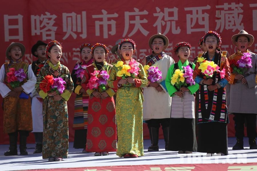 圖為紀(jì)念西藏百萬(wàn)農(nóng)奴解放63周年時(shí),日喀則的小朋友載歌載舞,歡慶節(jié)日 攝影:王佳豪