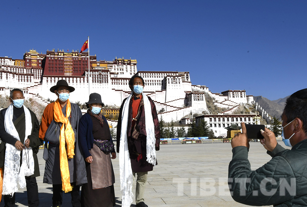 圖為2022年12月初,拉薩市各旅游景點恢復開放,游客在布達拉宮廣場拍照留念 攝影:王媛媛