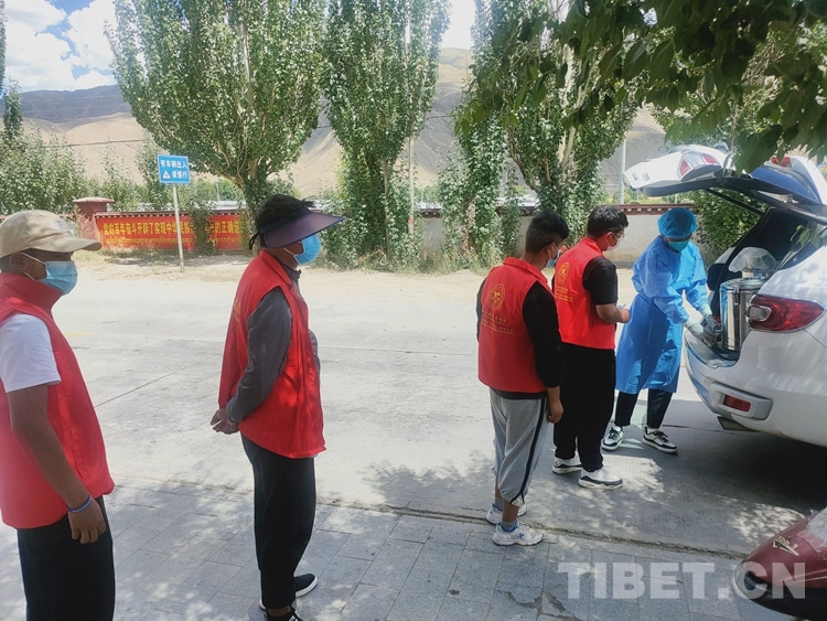 資料圖:瓊結縣藏醫(yī)院工作人員為一線防疫工作人員送去藏藥“催湯”