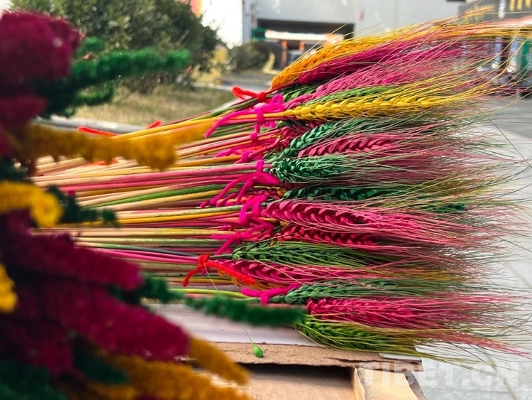圖為年貨市場(chǎng)里的“羅薩梅朵”(青稞穗) 攝影:德吉卓瑪