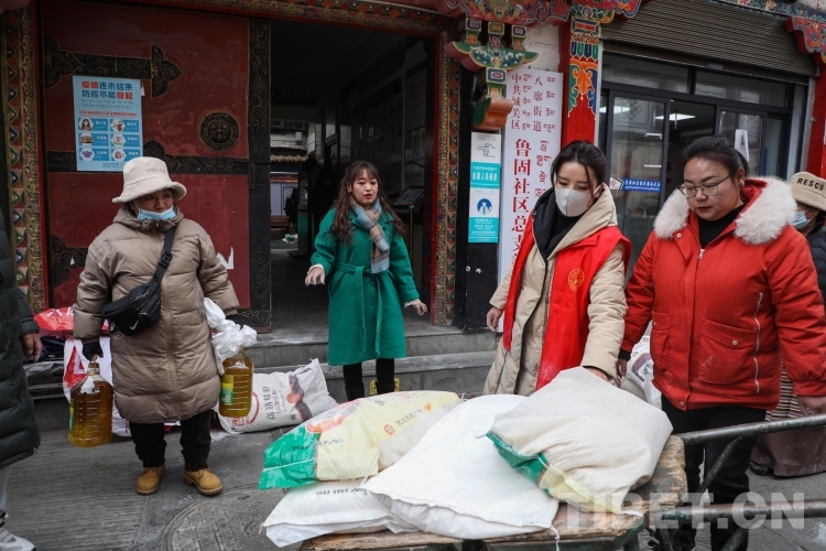 中國西藏網(wǎng)訊 近日,在西藏自治區(qū)拉薩市城關(guān)區(qū)八廓街道魯固社區(qū)居委會的院子里,不時(shí)傳來陣陣歡聲笑語,在院子的正中間,一袋袋大米、面粉,一桶桶食用油碼放整齊。