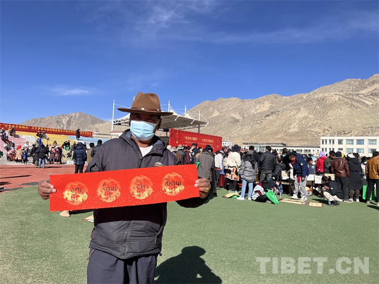 “我來自那曲安多縣,在森布日生活已有近一年,這里氣候暖,基礎(chǔ)設(shè)施齊全,真是趕上了好政策”66歲的多布杰說,他還主動(dòng)拿起書法家現(xiàn)場書寫并贈(zèng)送給他的吉祥對(duì)聯(lián)說:“今天真是很開心,觀看了一場精彩的節(jié)目,還得到了書法家寫的‘扎西德勒’吉祥對(duì)聯(lián),這個(gè)我要貼在家里的門窗上”。