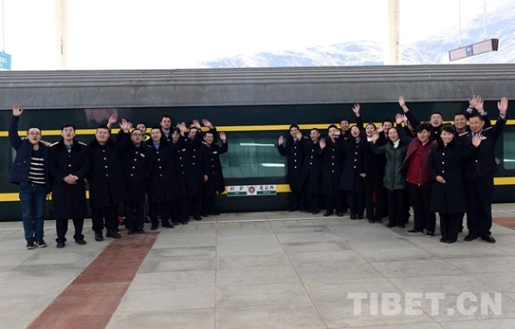這是京藏車隊二組乘務(wù)員在拉薩站發(fā)車前與自己朝夕相伴的列車拍照留念(唐召明2016年2月3日攝)