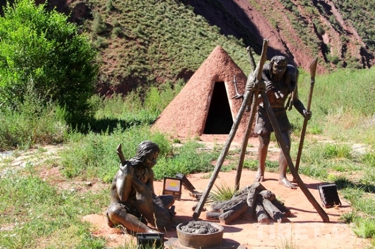 “卡若遺址從1977年發(fā)現(xiàn)之后,先后進行了4次發(fā)掘。按照國家文物局的要求,我們建立了遺址公園,并根據(jù)卡若遺址的考古報告,按照三個時間先后的順序進行了三組的場景復原,為的是向后人更好地展示卡若遺址以及所蘊含的文化。”