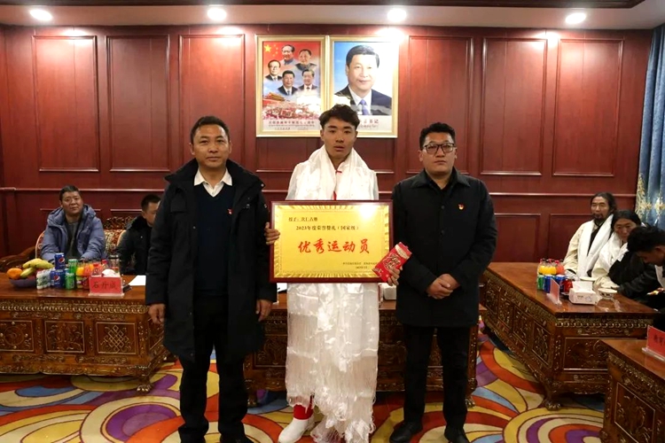 中國西藏網(wǎng)訊 近日,西藏自治區(qū)那曲市比如縣在夏曲鎮(zhèn)舉行歡迎越野滑雪國家運(yùn)動員次仁占堆榮歸故鄉(xiāng)座談會。家鄉(xiāng)父老鄉(xiāng)親向次仁占堆回到家鄉(xiāng)表示熱烈歡迎,向其頒授“2023年度榮譽(yù)禮贊(國家級)優(yōu)秀運(yùn)動員”榮譽(yù)牌。
