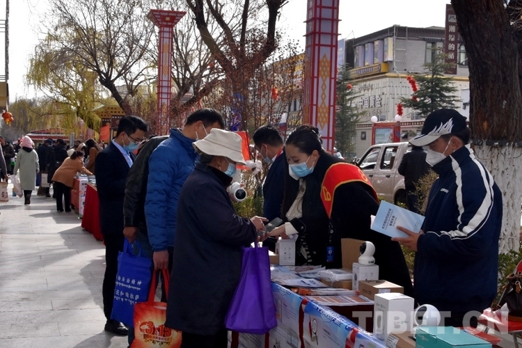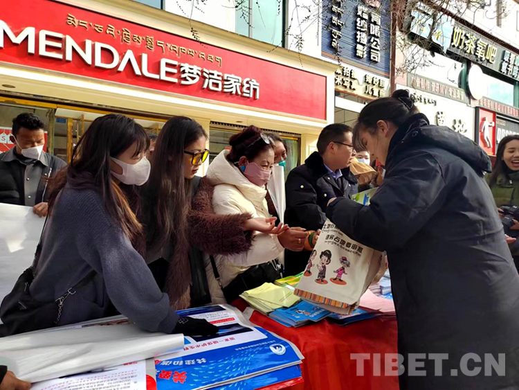 圖為活動現(xiàn)場工作人員向市民發(fā)放宣傳物品 攝影:次旦拉姆