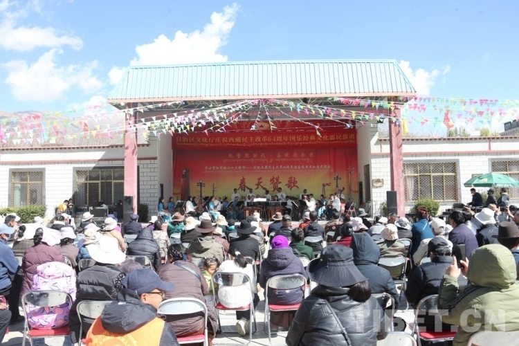 中國西藏網(wǎng)訊 近日,由西藏自治區(qū)文化廳主辦,西藏自治區(qū)歌舞團(tuán)、藏劇團(tuán)承辦的慶祝西藏民主改革64周年——國樂經(jīng)典文化惠民演出《春天贊歌》在拉薩拉開序幕,并將于近期在拉薩、日喀則等地演出近20場(chǎng)。