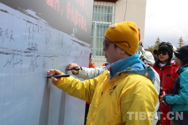 圖為參與人員在承諾簽字墻上簽字 攝影:德吉卓瑪