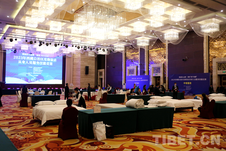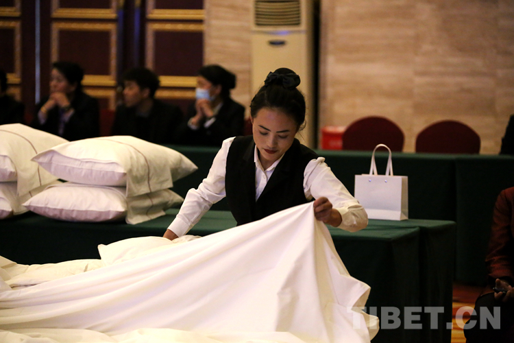 中國西藏網(wǎng)訊 5月11日,由西藏自治區(qū)旅游發(fā)展廳、西藏自治區(qū)總工會、共青團西藏自治區(qū)委員會、西藏自治區(qū)婦女聯(lián)合會主辦,西藏旅游飯店業(yè)協(xié)會承辦的2023年西藏自治區(qū)星級飯店從業(yè)人員服務技能競賽在拉薩開賽。45名選手圍繞中餐宴會擺臺、西餐宴會擺臺、中式鋪床及夜床服務、前廳服務4個項目同臺競技。