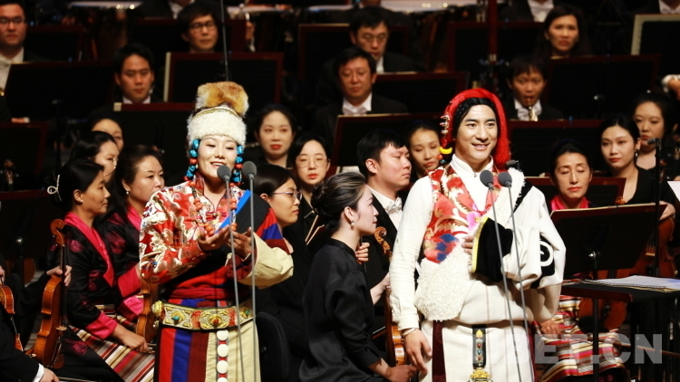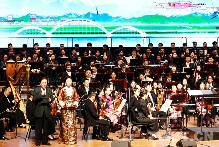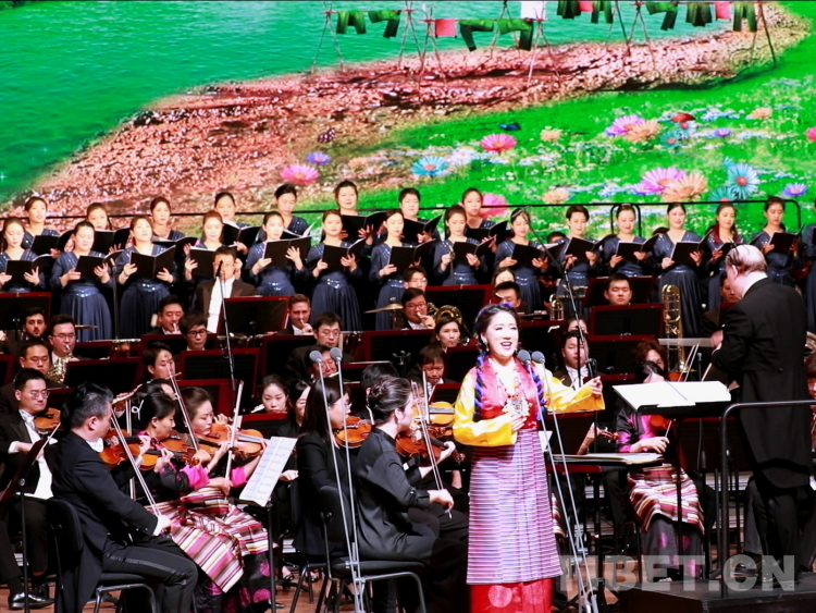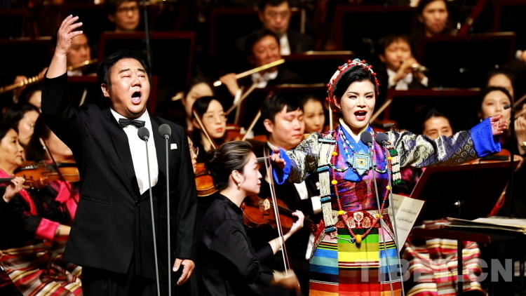 圖為中音歌唱家、國家一級演員霍勇,西藏自治區(qū)歌舞團(tuán)青年女高音次仁央宗領(lǐng)合唱《美麗的西藏 可愛的家鄉(xiāng)》 攝影:劉莉