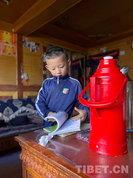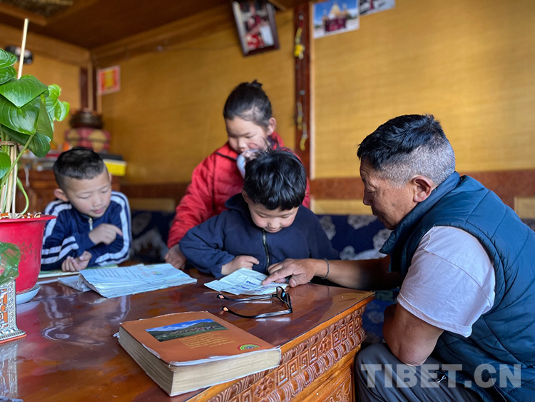 阿噶大爺自己粗通藏文,能督促和檢查藏文作業(yè),孩子們則非常享受爺爺驗(yàn)收他們的學(xué)習(xí)成果,每次都爭(zhēng)先恐后地請(qǐng)爺爺聽(tīng)自己的發(fā)音和背誦是否準(zhǔn)確。平時(shí)老師還會(huì)安排上網(wǎng)課,因此不會(huì)耽誤他們的學(xué)業(yè)。