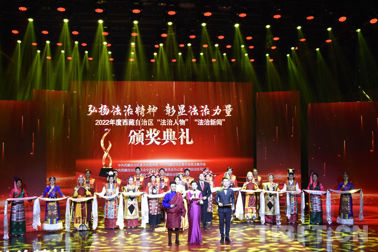 頒獎典禮現場通過播放獲獎人物短片、主持人采訪互動和法治文藝演出,展現了法治人物的先進事跡和法治西藏建設成效。(中國西藏網 記者/次旦拉姆 德吉卓瑪)