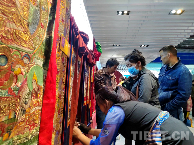 圖為市民在展銷活動(dòng)現(xiàn)場選購唐卡