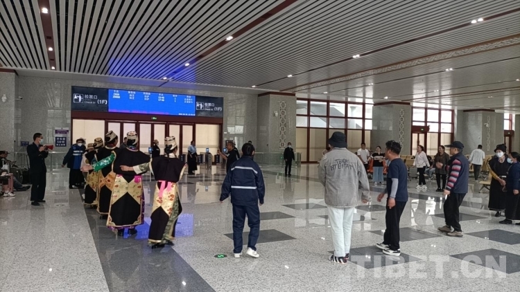 中國西藏網(wǎng)訊 2023年6月25日,拉薩火車站、林芝火車站內(nèi)異常熱鬧。在拉薩火車站,準(zhǔn)備乘坐C925次旅客列車前往林芝的旅客和車站“天路格?;ā狈?wù)隊的工作人員一起開展著競答互動小游戲,復(fù)興號列車紀(jì)念筆、車站卓瑪工作室卡通形象鑰匙扣、旅行雜志等小禮品深受旅客喜愛。在林芝火車站,工作人員和旅客跳起了熱情的鍋莊,用特有的方式慶祝拉林鐵路開通兩周年。