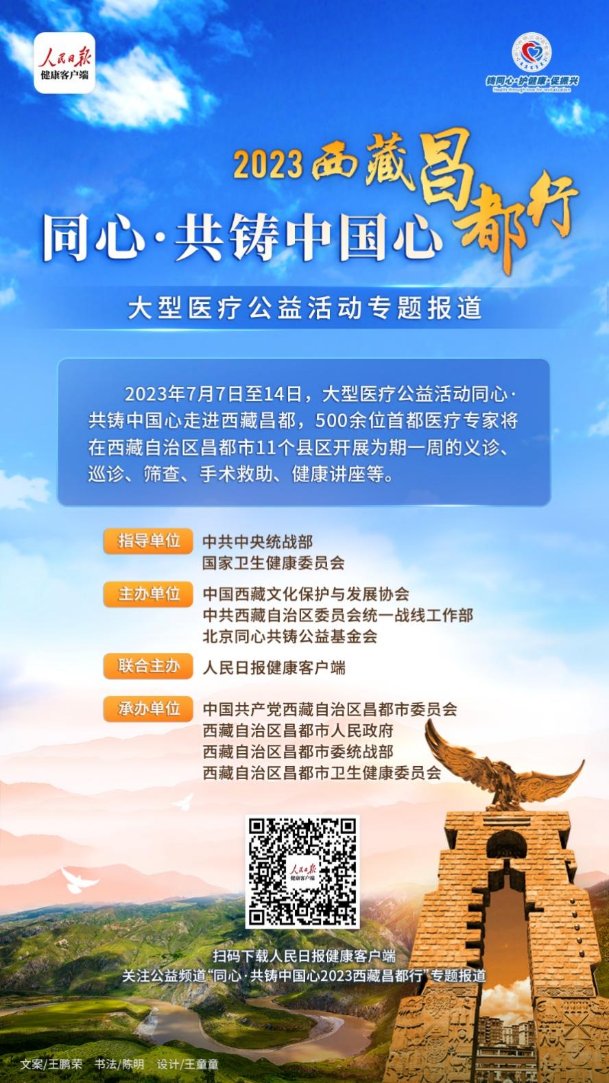 中國西藏網(wǎng)訊 “同心向黨·共鑄明天——‘同心·共鑄中國心’2023西藏昌都行”將于7月8日在西藏自治區(qū)昌都市卡若區(qū)解放廣場(chǎng)啟動(dòng),屆時(shí)將有來自首都206家醫(yī)療單位的502位醫(yī)務(wù)志愿者,為當(dāng)?shù)?1個(gè)區(qū)縣開展為期一周的健康公益服務(wù)。