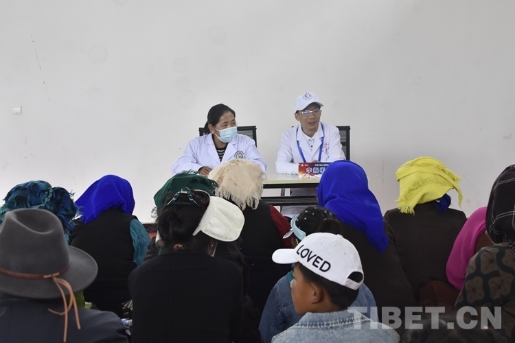 圖為7月8日,活動現(xiàn)場開展了骨關(guān)節(jié)炎防治健康知識講座,鄉(xiāng)政府還安排了一名翻譯 攝影:次旦拉姆