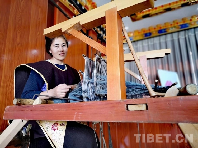 卡斯木村的很多婦女因?yàn)樾枰疹櫪先撕秃⒆?,幾乎沒有外出務(wù)工的可能,收入有限。直到2016年4月,村中的致富帶頭人桑杰措姆組織起了16名婦女開辦氆氌加工坊,大家的生活條件開始起了大變化,每名女工半年的收入就超過了萬元。