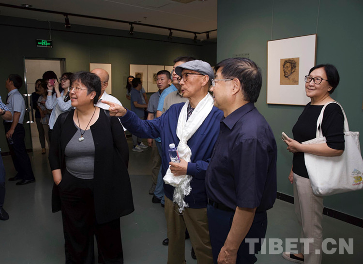 開幕式后,各位來賓在韓書力先生的引領(lǐng)解說下,興致勃勃地參觀了展覽。通過韓書力先生的講解,大家進一步加深理解了作品所體現(xiàn)的西藏各族人民積極向上的精神面貌,體會到了各族群眾淳樸真摯的人生之美,感知到畫家對那一片高天厚土的真摯情感。