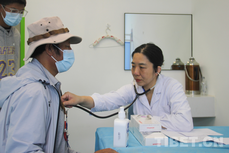圖為義診專(zhuān)家在拉薩市城關(guān)區(qū)人民醫(yī)院為患者聽(tīng)診 攝影:旦曲