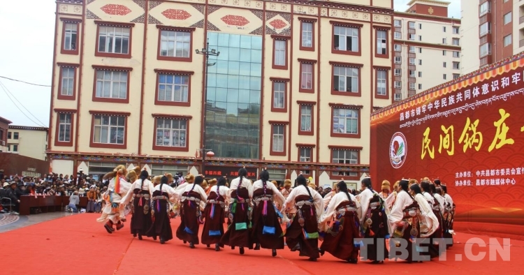 中國(guó)西藏網(wǎng)訊 8月20日,西藏昌都市茶馬廣場(chǎng)舉辦“鑄牢中華民族共同體意識(shí)和牢固樹(shù)立‘三個(gè)意識(shí)’宣傳教育民間鍋莊舞”比賽,來(lái)自11縣(區(qū))和主城區(qū)16支參賽隊(duì)伍穿著節(jié)日盛裝,以熱情豪爽的精神,向廣大觀眾們展示表演鍋莊舞的神韻和魅力。