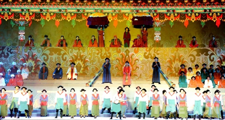 隨后盛大的開幕式文藝演出如期而至。演出共分為《悠遠古韻》《詩意微芒》《如炬經典》《輝煌盛世》四個篇章?!队七h古韻》篇章為大型情景表演,結合古格壁畫為開場表演,展現出阿里人民群眾的精神面貌和獨特的阿里神韻。《詩意微芒》匯集阿里地區(qū)諸多極具代表性的國家級非物質文化遺產節(jié)目,展現阿里地區(qū)悠久燦爛的古代文明遺存。《如炬經典》篇章通過不同舞蹈,展現阿里獨具特色的民間歌舞文化。《盛世弦歌》則展現了阿里地區(qū)以熱情昂揚的姿態(tài)在全力以赴推動建設雪域高原“西部明珠”中取得的一系列可喜的成績。
