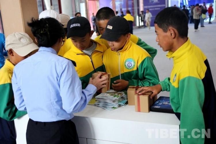 圖為拉薩市第三初級中學(xué)8年級8班的學(xué)生在展覽館參觀時向工作人員了解網(wǎng)絡(luò)安全相關(guān)知識 攝影:王佳豪
