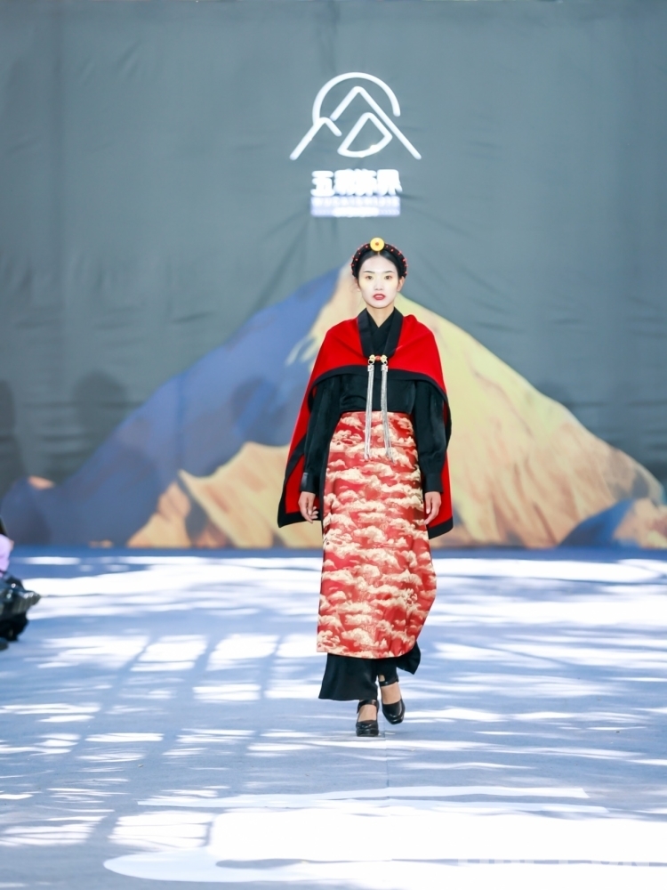 記者在現(xiàn)場了解到,月浮系列靈感來源于日喀則市亞東縣上亞東鄉(xiāng)、吉隆縣和謝通門縣的傳統(tǒng)服飾,以黑紅兩種基調(diào)為主。紅色代表智慧熱情,黑色象征著莊嚴與敬畏。云撫系列靈感來源于日喀則市薩迦縣、康馬縣和定日縣的傳統(tǒng)服飾,以大地色調(diào)為主,將自然的美妙展現(xiàn)在服飾創(chuàng)作之中。充滿溫暖和沉穩(wěn)的氛圍大地色,彰顯出人類與自然的和諧共處。其他系列也各自展現(xiàn)了日喀則的特色和魅力。