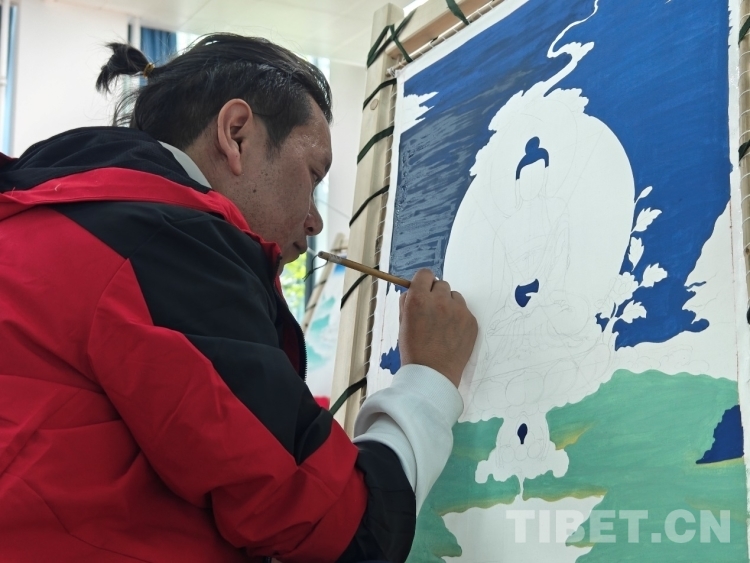 圖為唐卡繪制組選手正在比賽
