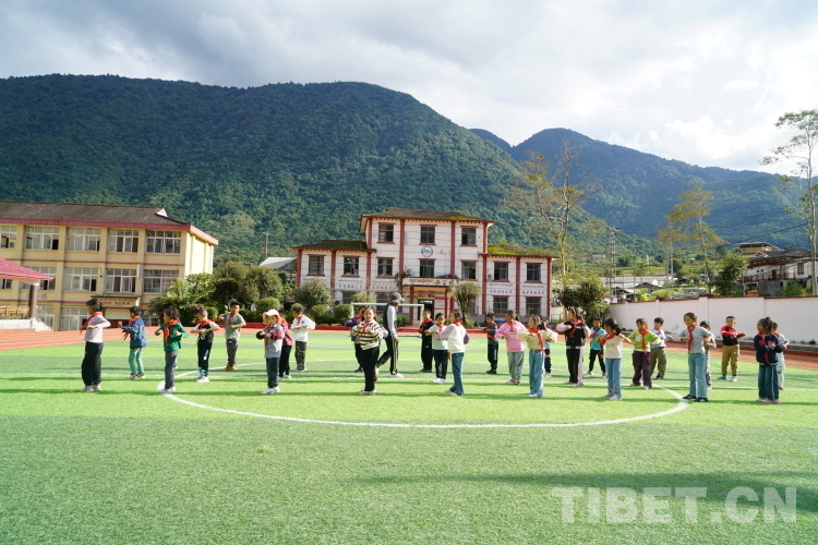 圖為墨脫縣完全小學學生正在標準化的操場里上體育課 攝影:趙振宇