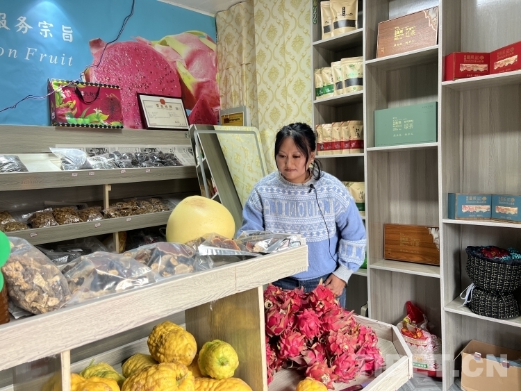 在墨脫縣德興鄉(xiāng)德興村村民西繞措姆的店里,我們看到了整齊擺放的火龍果、香蕉等熱帶水果。在整個墨脫縣,他們夫妻兩人是第一家,也是唯一一家規(guī)范種植火龍果的農(nóng)戶?!澳莻€時候我老公剛大學畢業(yè),在短視頻上看到有人在種火龍果,他就從網(wǎng)上買了火龍果苗,自己看著視頻學習種植?!?020年夫妻兩人迎來了第一個火龍果收獲季,2022年他們獲得政府民生實事扶持大學生資金30萬元,種植規(guī)模也擴大到了23畝。