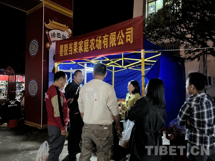圖為西繞措姆正在“墨脫趕集”攤位上向游客推銷自家種植的水果 攝影:德吉卓瑪
