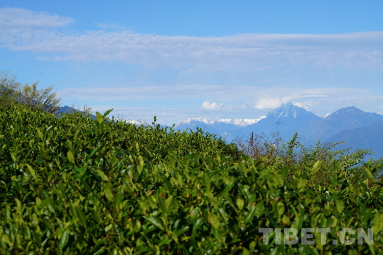 圖為在飄渺茶園內(nèi),格林村的茶園和遠處的雪山形成明顯的氣候差異 攝影:德吉卓瑪