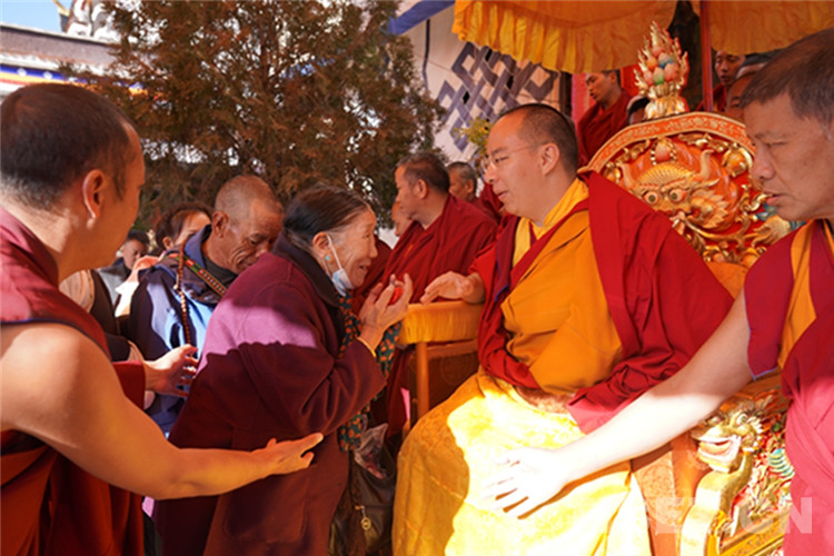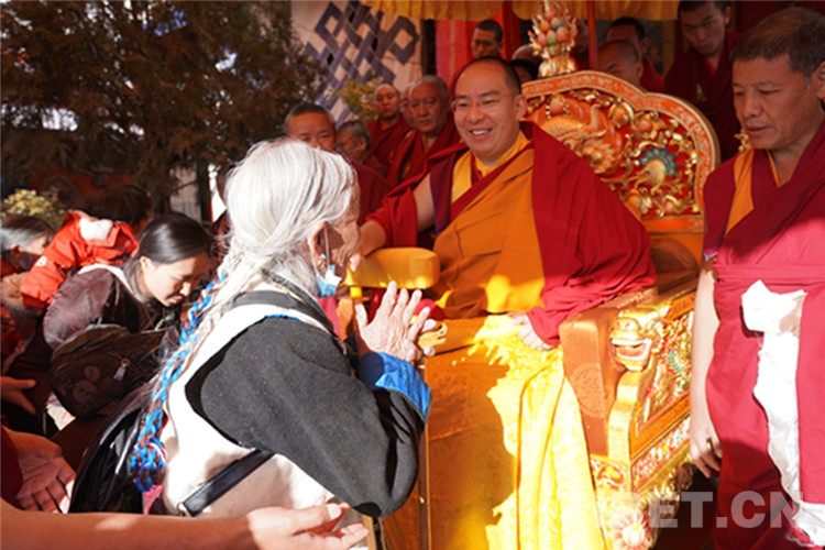 中國(guó)西藏網(wǎng)訊 11月13日至14日,全國(guó)政協(xié)常委、中國(guó)佛教協(xié)會(huì)副會(huì)長(zhǎng)、中國(guó)佛協(xié)西藏分會(huì)會(huì)長(zhǎng)班禪額爾德尼?確吉杰布在西藏日喀則市扎什倫布寺多加大院為信教群眾摸頂賜福,這是近年來(lái)規(guī)模最大的一次班禪摸頂賜?;顒?dòng)。圖為班禪摸頂賜福 攝影:王淑(中國(guó)西藏網(wǎng) 記者/王淑 賈華加)