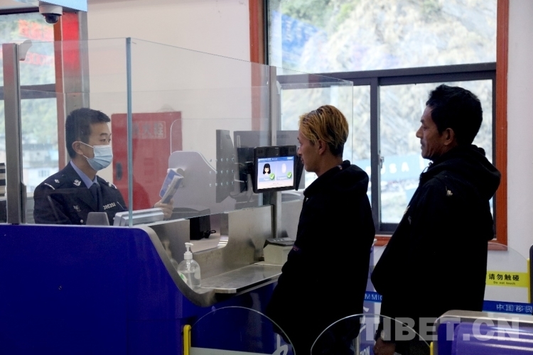 圖為聶拉木邊檢站民警對出入境人員進行驗放 攝影:鄒興國