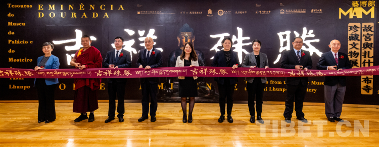 中國(guó)西藏網(wǎng)訊 12月15日,“吉祥殊勝——故宮與扎什倫布寺珍藏文物展”在澳門(mén)藝術(shù)博物館隆重開(kāi)幕。澳門(mén)特別行政區(qū)政府社會(huì)文化司司長(zhǎng)代表、社會(huì)文化司司長(zhǎng)辦公室主任何鈺珊,故宮博物院院長(zhǎng)王旭東,中央人民政府駐澳門(mén)特別行政區(qū)聯(lián)絡(luò)辦公室副主任嚴(yán)植嬋,西藏自治區(qū)文物局黨組書(shū)記趙興邦、文化局局長(zhǎng)梁惠敏、扎什倫布寺管理委員會(huì)副主任洛桑扎西,澳門(mén)基金會(huì)行政委員會(huì)主席吳志良、旅游局局長(zhǎng)文綺華及澳門(mén)日?qǐng)?bào)社長(zhǎng)陸波出席開(kāi)幕現(xiàn)場(chǎng)。