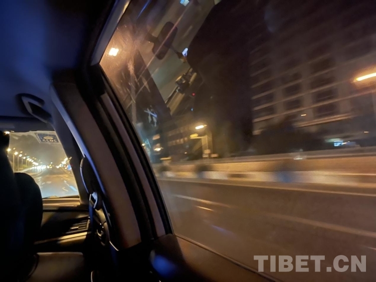 圖為凌晨三點(diǎn)趕往首都機(jī)場(chǎng)的車上 攝影:王妍丹