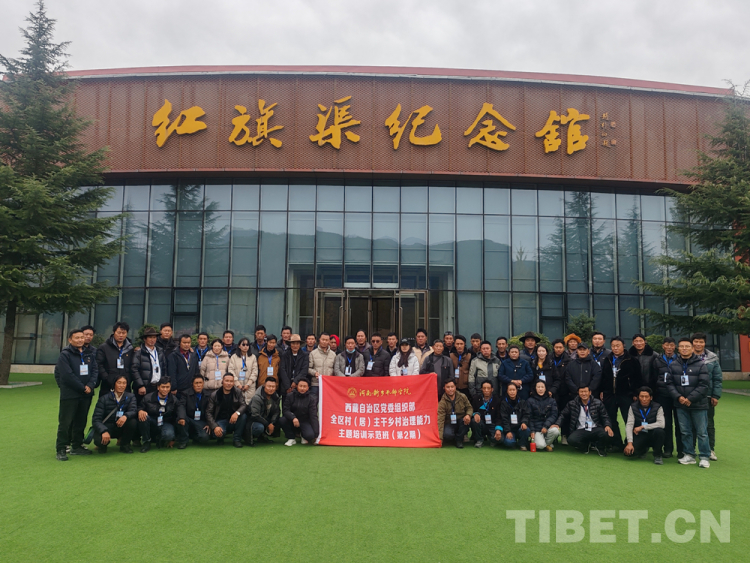 圖為西藏自治區(qū)黨委組織部全區(qū)村(居)主干鄉(xiāng)村治理能力主題培訓(xùn)示范班走進(jìn)紅旗渠紀(jì)念館學(xué)員合影