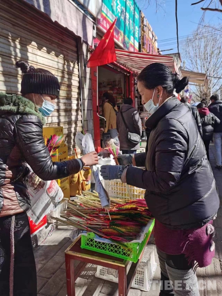 圖為藏歷新年之前顧客在購買五彩青稞穗 攝影:巴桑