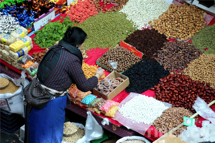 圖為銷售著琳瑯滿目各式藏歷新年年貨的八廓商城 攝影:趙振宇
