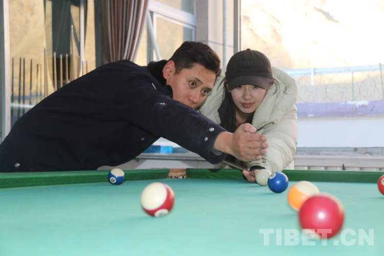 圖為單位陽光房里洛追與永措切磋球技,洛追在旁耐心指導(dǎo) 攝影:鄭鵬飛