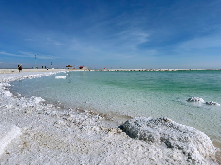 湖岸邊厚實(shí)的白色鹽灘。李一凡 攝