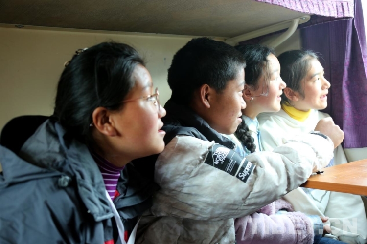 還有一到飯點就來詢問孩子們怎么吃飯的列車員、和孩子們一起跳鍋莊的游客、主動分享零食的小妹妹……同學們在火車上的經(jīng)歷,讓帶隊老師次仁羅布不禁感嘆,孩子們第一次出遠門,還沒到目的地就已經(jīng)深切地感受到中華民族一家親的濃厚氛圍,真是非常幸運。