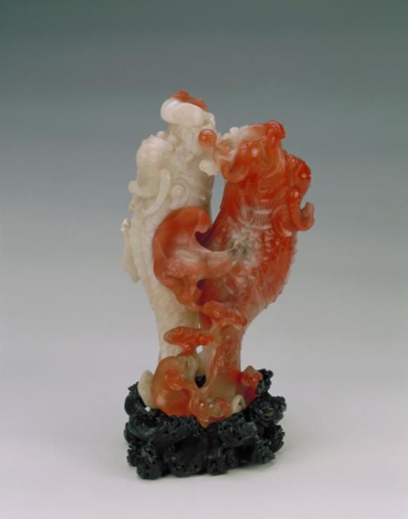 圖為紅白瑪瑙巧做雙魚龍花插 圖片來源:故宮博物院