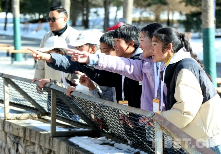 短暫休整后,孩子們從入住的酒店出發(fā)前往研學第一站——北京動物園。冬季的動物園稍顯冷清,“營業(yè)”的動物并算太多,但似乎完全沒有影響孩子們的心情,東瞅瞅西看看,眼神中總是帶著那份充滿童真的好奇,甚至動物園內(nèi)的動物雕像都能吸引他們討論一會。