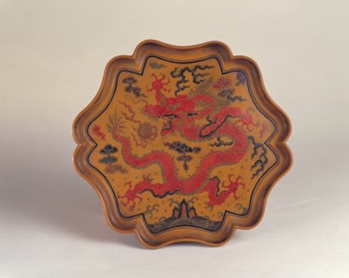 圖為填漆戧金云龍紋葵瓣式盤 圖片來源:故宮博物院