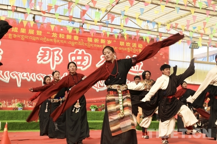 今年春節(jié)和藏歷新年期間,安多縣灘堆鄉(xiāng)為感激黨和國家的關(guān)心關(guān)懷,歌頌來之不易的幸福生活,鄉(xiāng)村文藝隊(duì)精心準(zhǔn)備了精彩紛呈的文藝節(jié)目,以嶄新的面貌和昂揚(yáng)的精神展現(xiàn)新時(shí)代牧民群眾的精神風(fēng)貌和幸福生活,舉辦了“鄉(xiāng)村振興 那曲奮進(jìn)”藝術(shù)成果暨“龍和新年 福祈新歲”慶兩節(jié)聯(lián)歡活動(dòng)。在當(dāng)?shù)馗刹亢娃r(nóng)牧民群眾的熱情邀請下,同心·共鑄中國心志愿者一行也加入到該活動(dòng)中,與200多名干部職工和牧民群眾在灘堆鄉(xiāng)文化站歡聚一堂、載歌載舞,共同歡度了一個(gè)難忘而充實(shí)的大年初一。