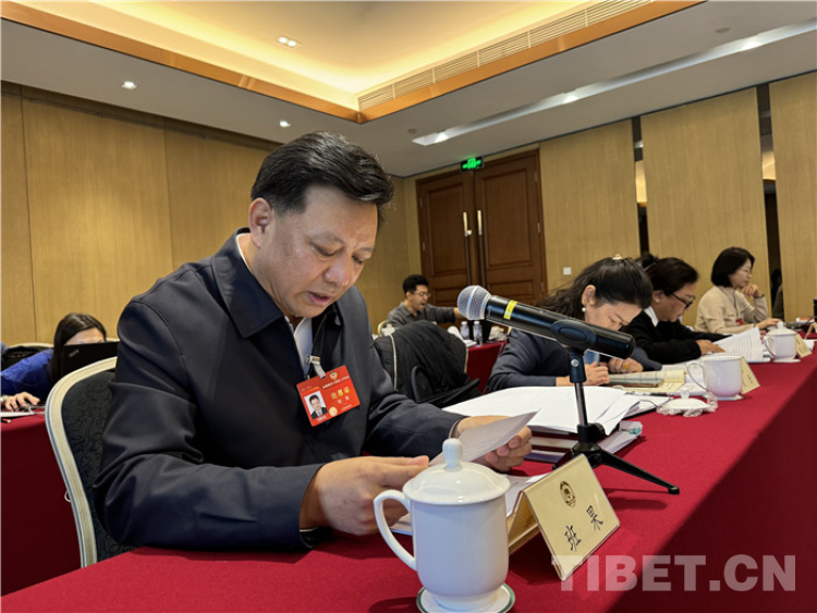 圖為全國(guó)政協(xié)委員,青海省委常委、統(tǒng)戰(zhàn)部部長(zhǎng)班果在全國(guó)兩會(huì)期間參加小組會(huì)議