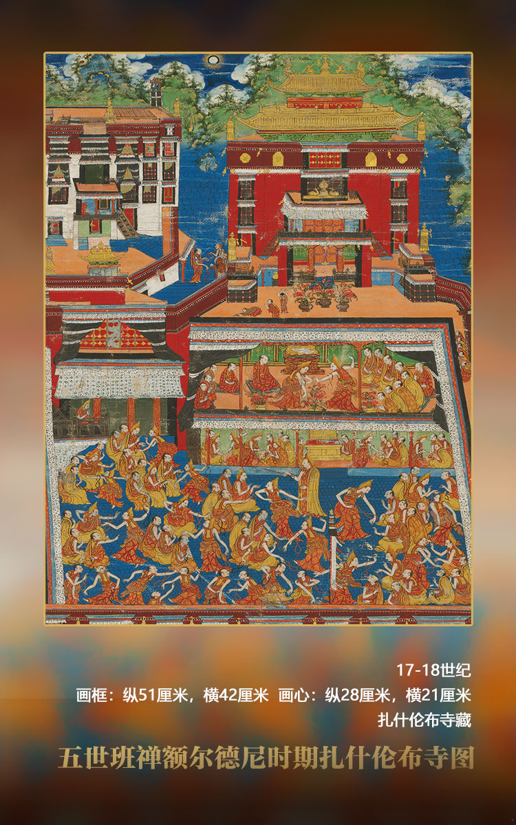 畫面以四世班禪靈塔殿為中心而不及其他,推測其年代應為五世班禪時期。