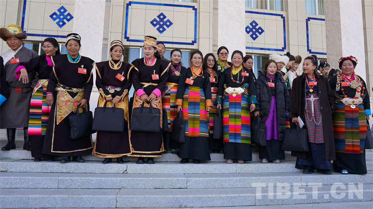 資料圖:參加西藏自治區(qū)第十二屆人民代表大會(huì)的部分女代表走出會(huì)場(chǎng) 攝影:王淑